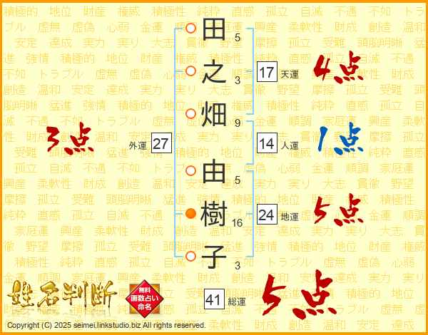 田之畑由樹子さんの総運は41画の5点!
