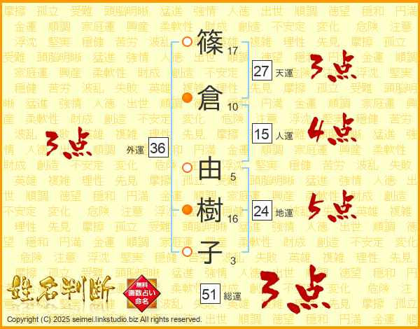 篠倉由樹子さんの総運は51画の3点!