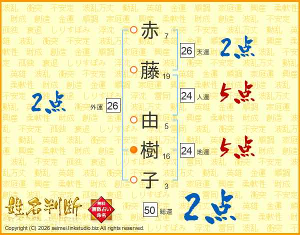 赤藤由樹子さんの天運は26画の2点!