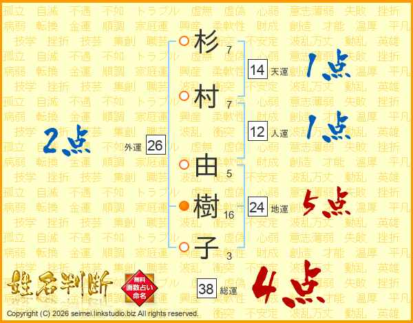 杉(7画)村(7画) 由(5画)樹(16画)子(3画)