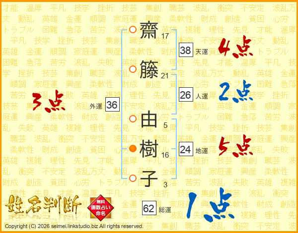 齋籐由樹子さんの総運は62画の1点!
