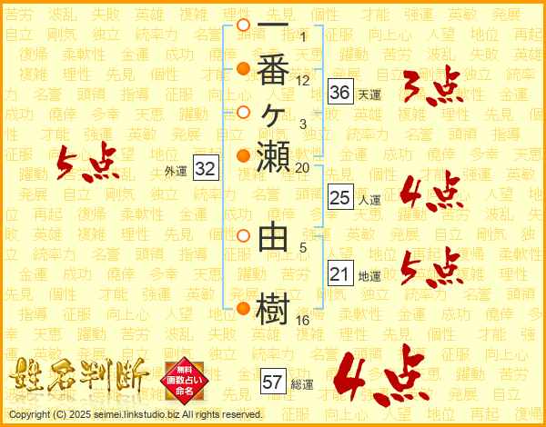 一番ヶ瀬由樹さんの外運は32画の5点!