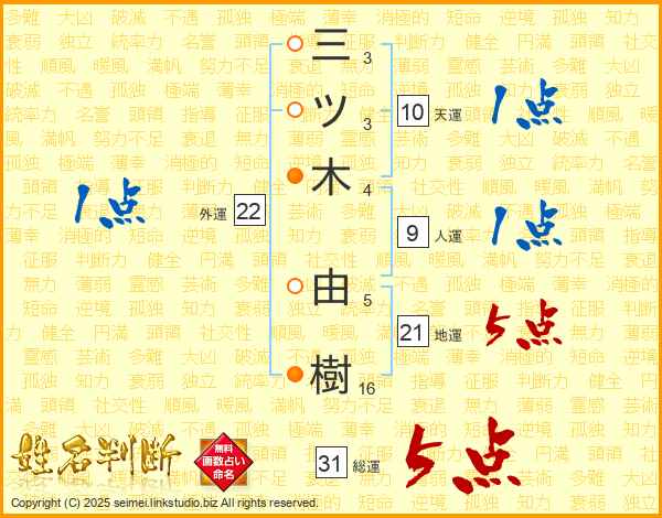 三ツ木由樹さんの総運は31画の5点!