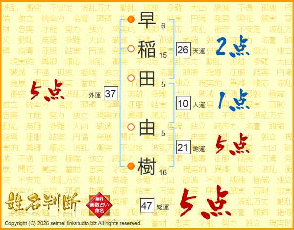 早稲田由樹さんの総運は47画の5点!