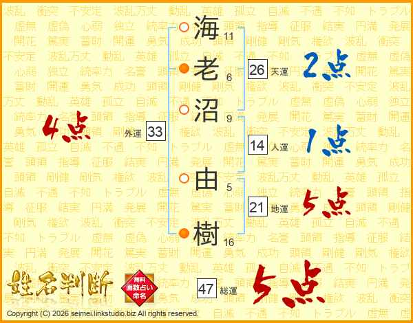 海老沼由樹さんの総運は47画の5点!