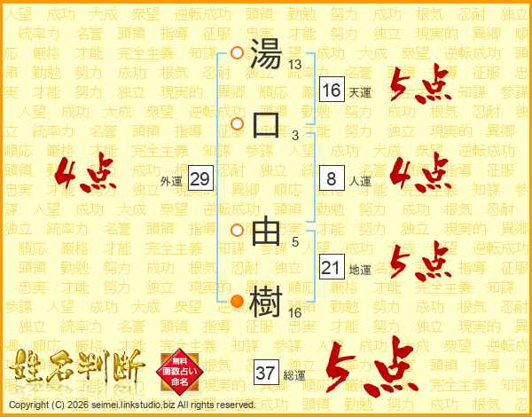 湯口由樹さんの総運は37画の5点!