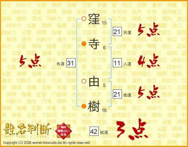 窪寺由樹さんの天運は21画の5点!