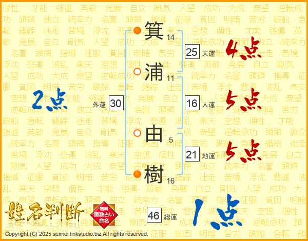 箕浦由樹さんの天運は25画の4点!