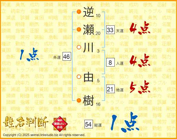逆瀬川由樹さんの総運は54画の1点!