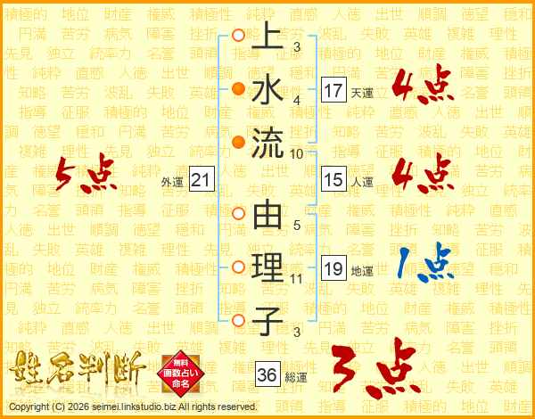 上水流由理子さんの総運は36画の3点!