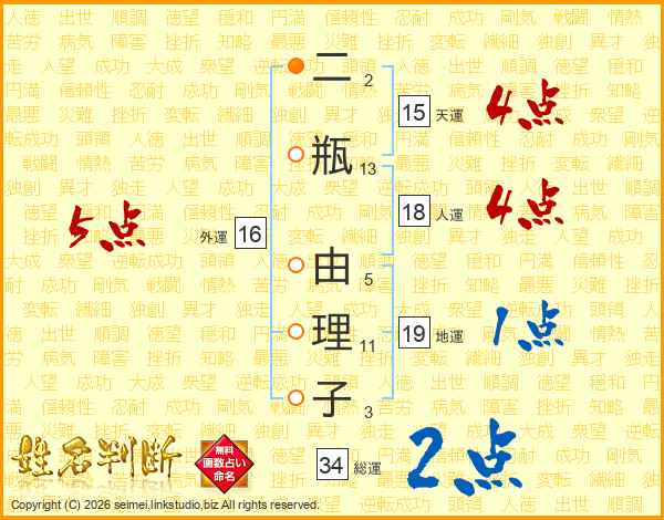 二瓶由理子さんの外運は16画の5点!