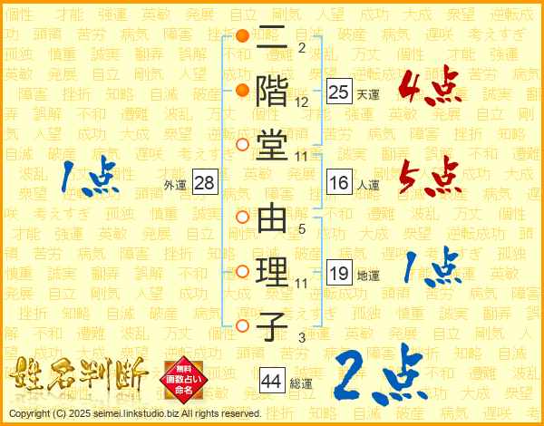二階堂由理子さんの総運は44画の2点!