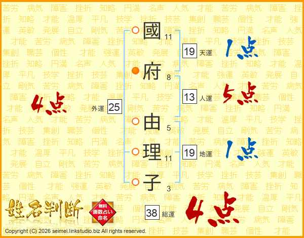 國府由理子さんの人運は13画の5点!