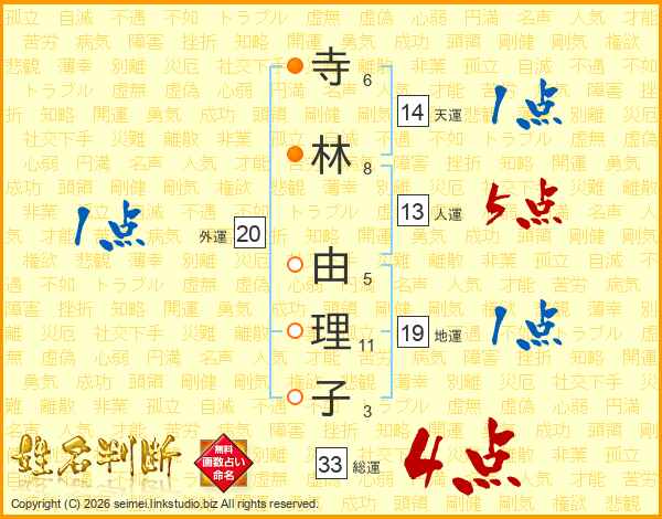 寺林由理子さんの総運は33画の4点!