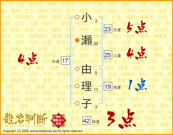 小瀬由理子さんの外運は17画の4点!