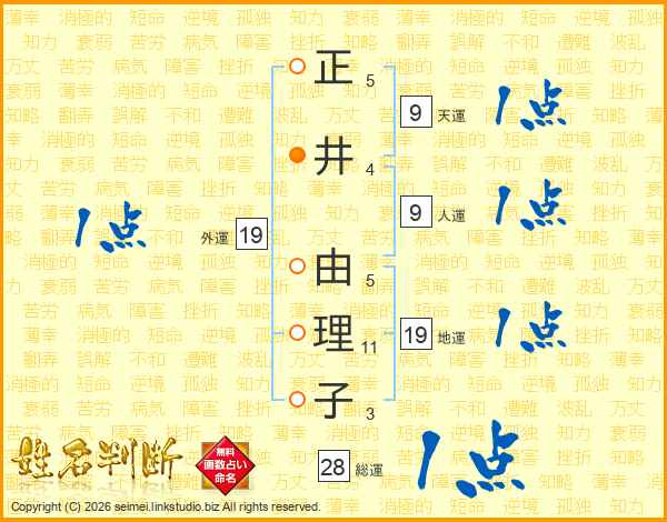 正井由理子さんの総運は28画の1点!