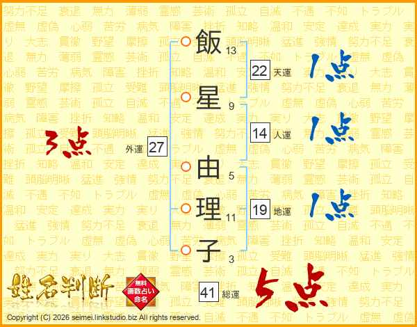 飯星由理子さんの総運は41画の5点!