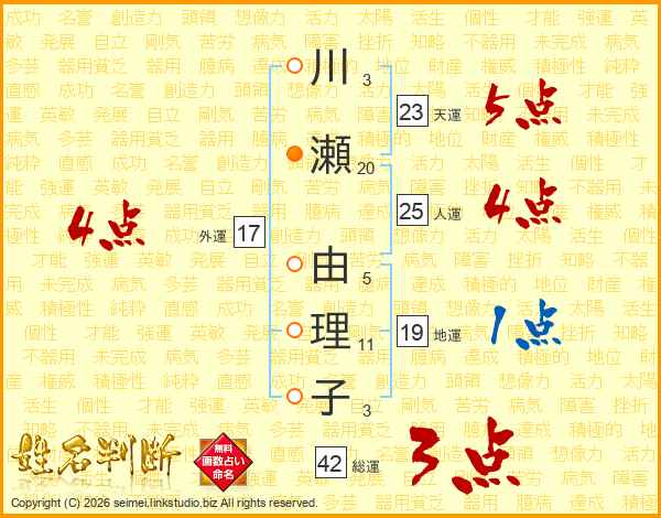 川瀬由理子さんの外運は17画の4点!