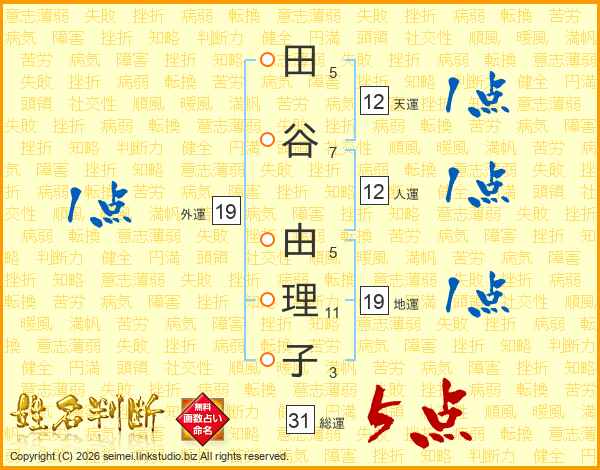 田谷由理子さんの総運は31画の5点!