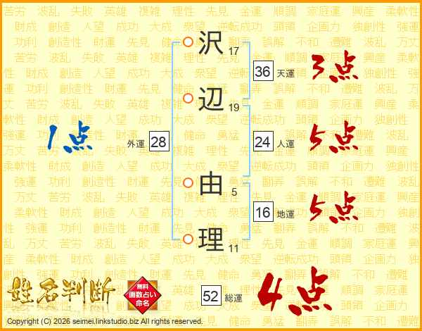 沢辺由理さんの総運は52画の4点!