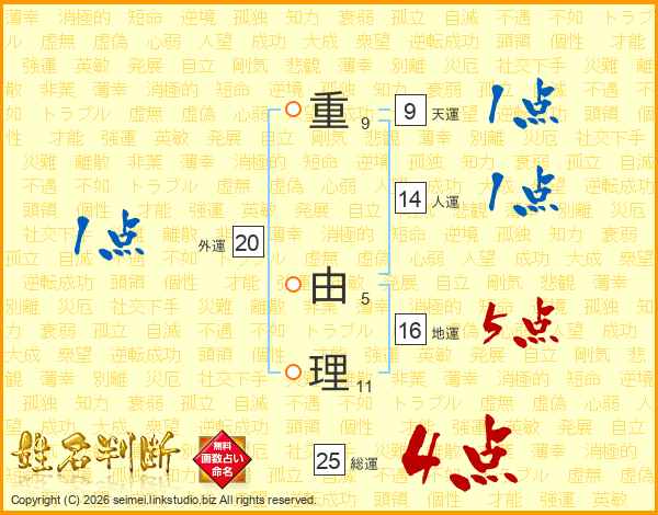 重由理さんの総運は25画の4点!
