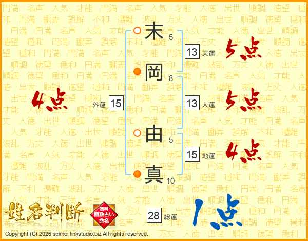 末岡由真さんの総運は28画の1点!