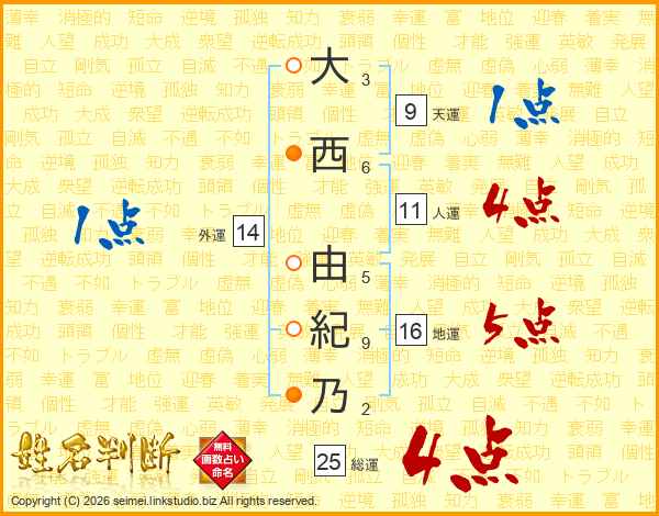 大西由紀乃さんの人運は11画の4点!