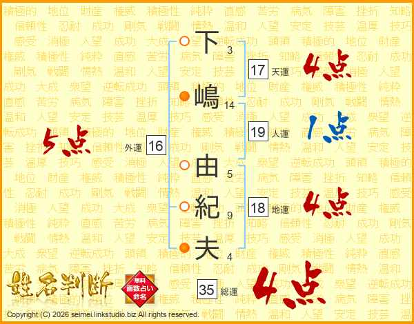 下嶋由紀夫さんの総運は35画の4点!