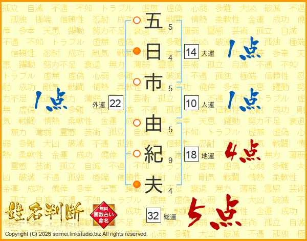 五日市由紀夫さんの天運は14画の1点!