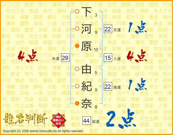 下河原由紀奈さんの総運は44画の2点!