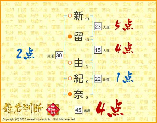 新留由紀奈さんの総運は45画の4点!