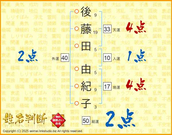 後藤田由紀子さんの天運は33画の4点!