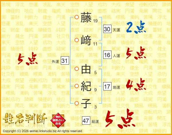 藤﨑由紀子さんの総運は47画の5点!