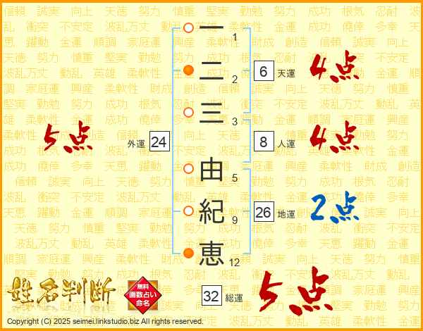 一二三由紀恵さんの総運は32画の5点!