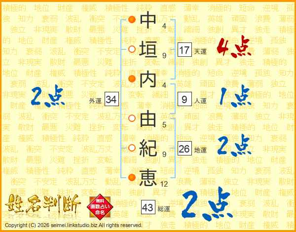 中垣内由紀恵さんの総運は43画の2点!