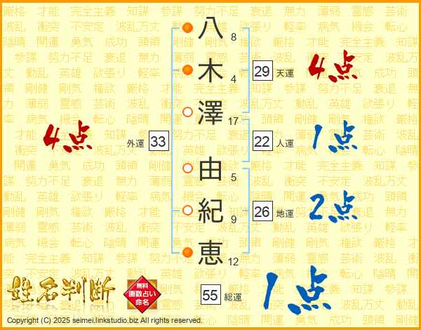 八木澤由紀恵さんの外運は33画の4点!