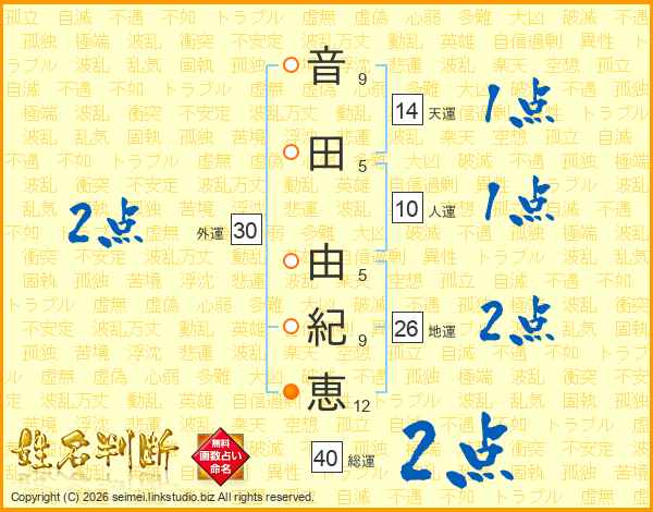 音田由紀恵さんの総運は40画の2点!