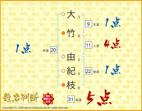大竹由紀枝さんの総運は31画の5点!