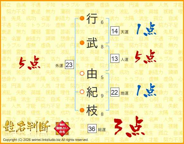 行(6画)武(8画) 由(5画)紀(9画)枝(8画)