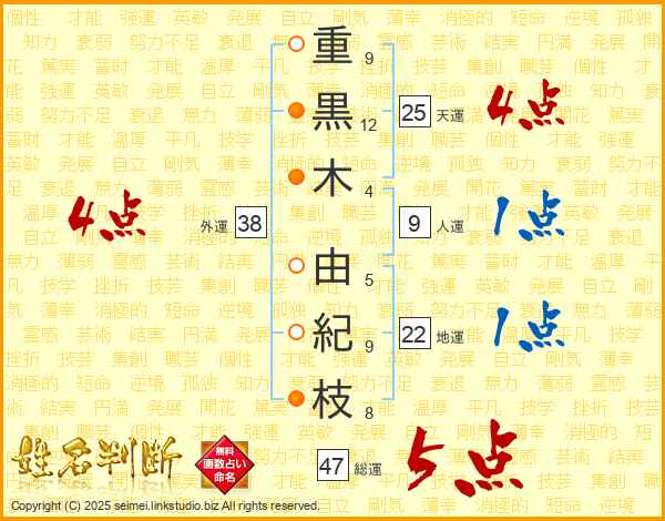 重黒木由紀枝さんの総運は47画の5点!