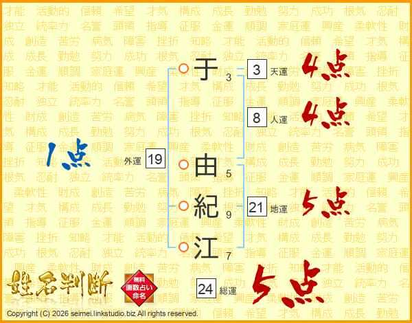 于由紀江さんの総運は24画の5点!