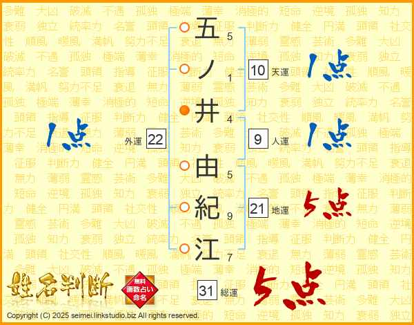 五ノ井由紀江さんの総運は31画の5点!