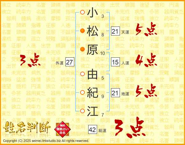 小松原由紀江さんの天運は21画の5点!
