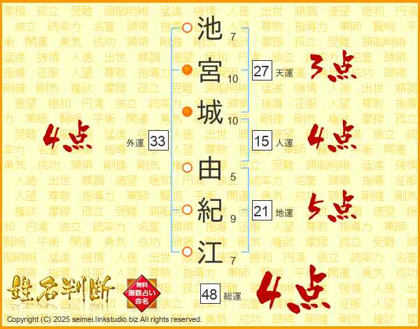 池宮城由紀江さんの外運は33画の4点!