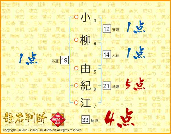 小柳由紀江さんの総運は33画の4点!