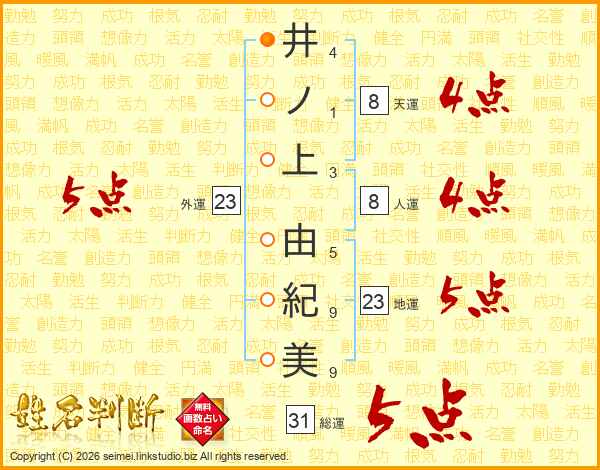井ノ上由紀美さんの総運は31画の5点!