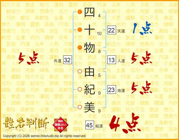 四十物由紀美さんの総運は45画の4点!