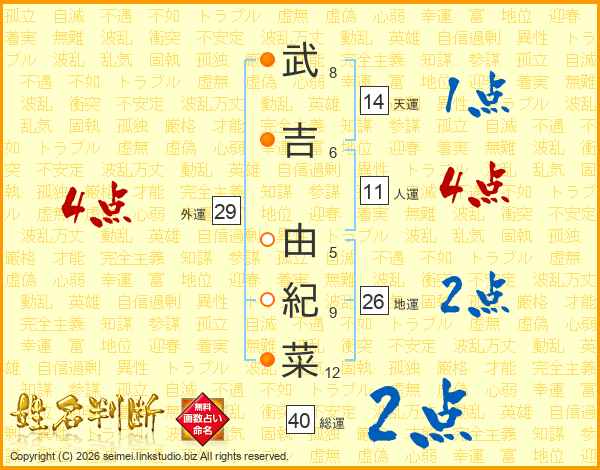 武吉由紀菜さんの地運は26画の2点!