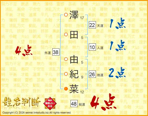 澤田由紀菜さんの総運は48画の4点!