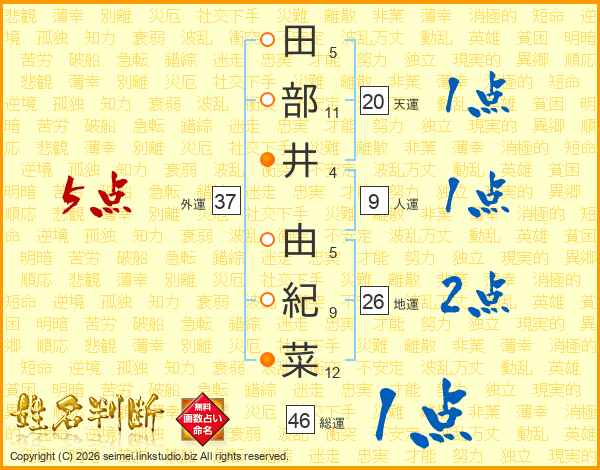 田部井由紀菜さんの総運は46画の1点!